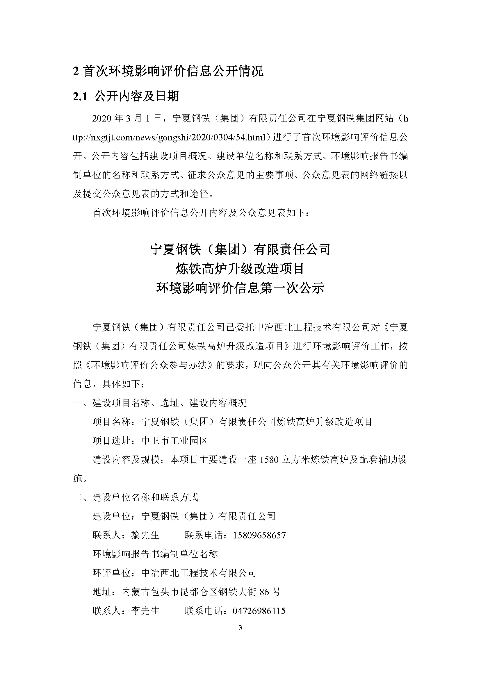 寧夏鋼鐵(集團(tuán))有限責(zé)任公司煉鐵高爐升級(jí)改造項(xiàng)目環(huán)境影響評(píng)價(jià)報(bào)批公示