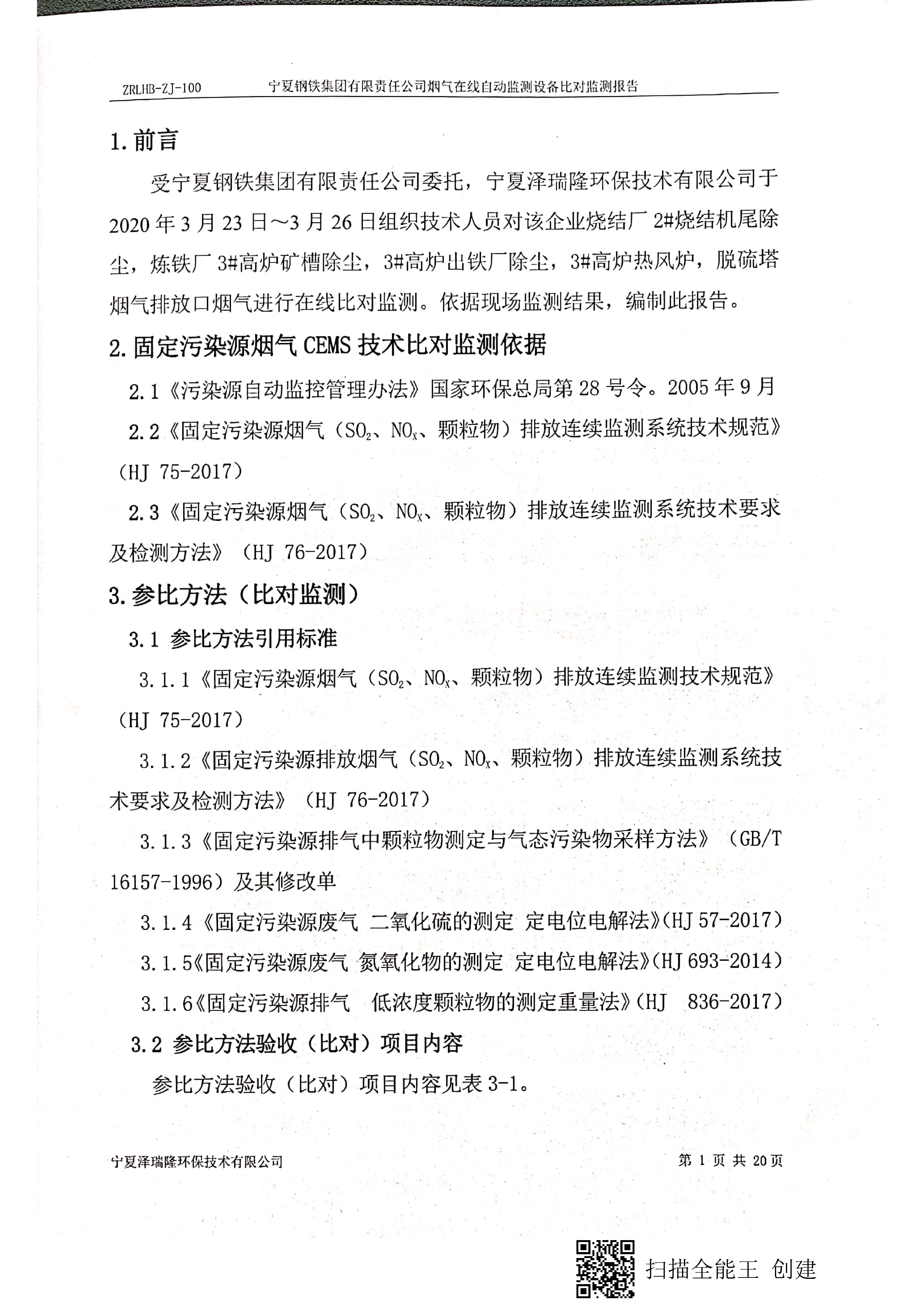 寧鋼2020年一季度自行檢驗報告