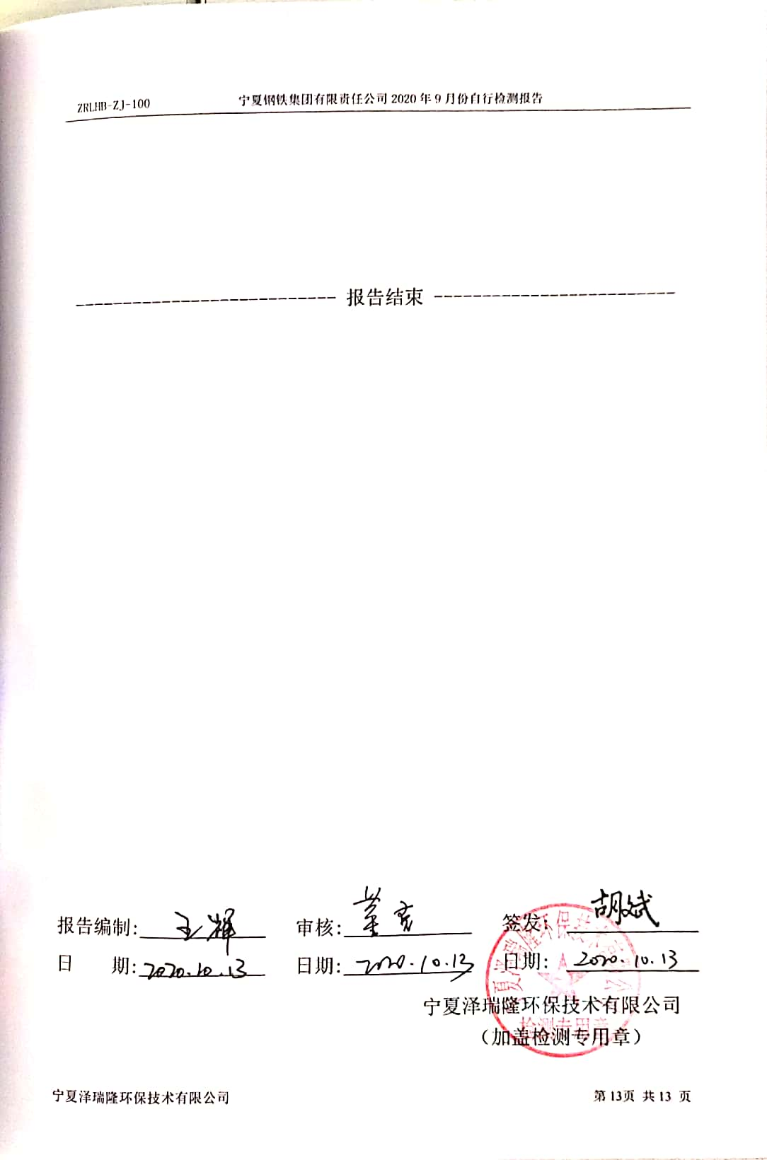 2020年9月自行檢測報告
