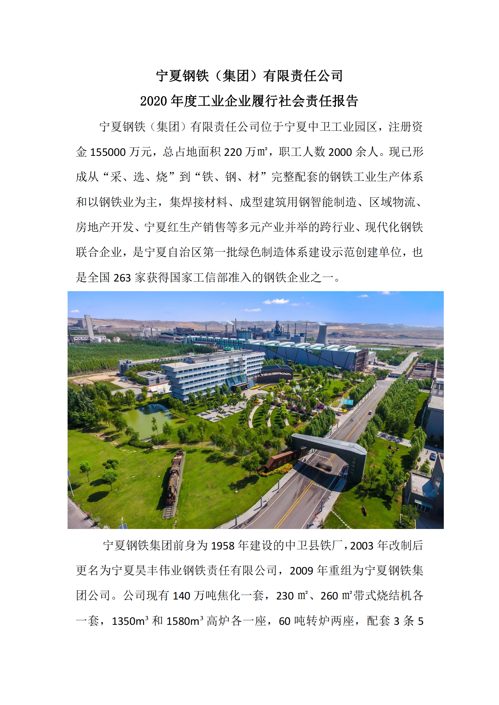 寧夏鋼鐵(集團(tuán))有限責(zé)任公司2020年度工業(yè)企業(yè)履行社會責(zé)任報(bào)告