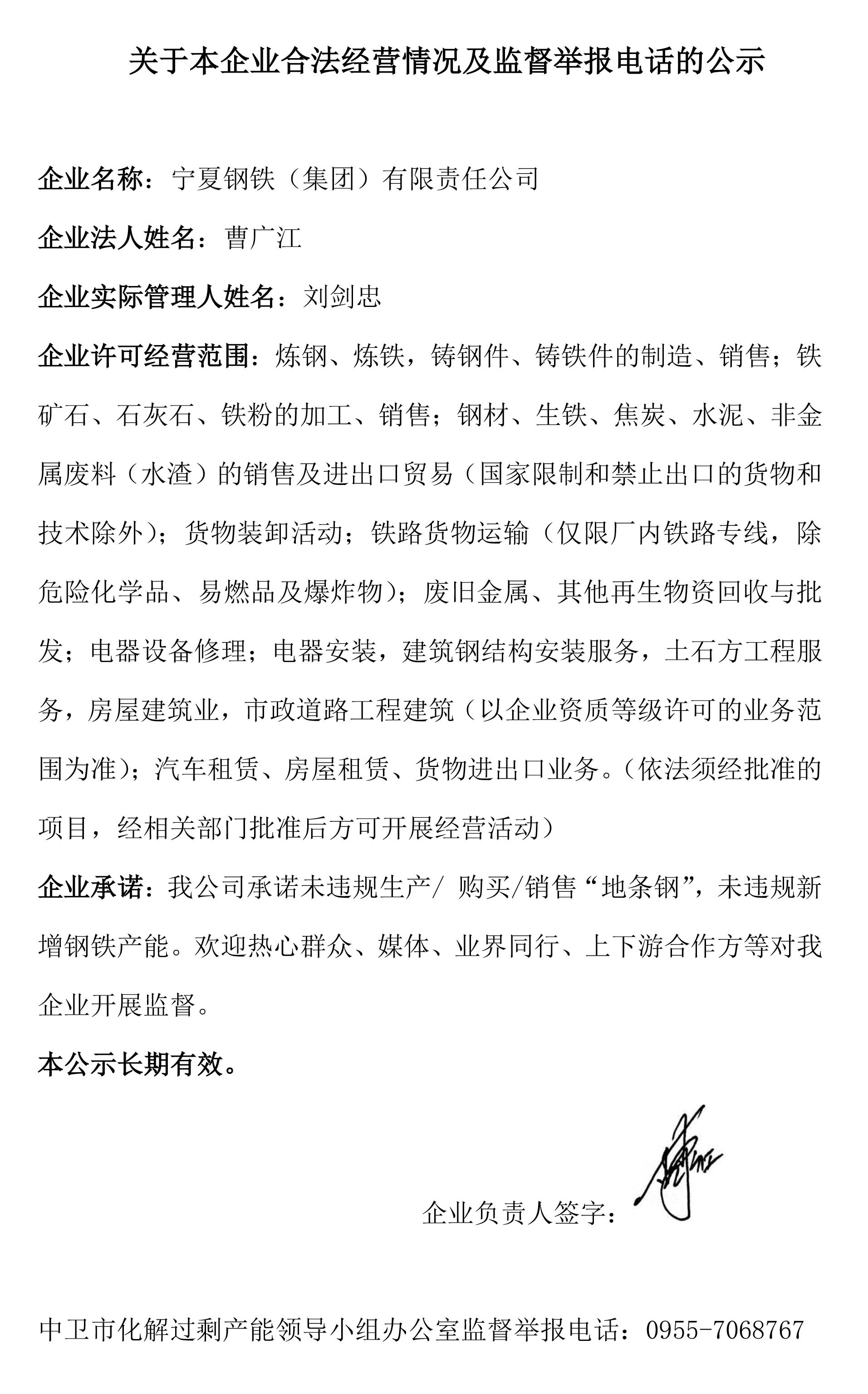 關(guān)于本企業(yè)合法經(jīng)營情況及監(jiān)督舉報電話的公示
