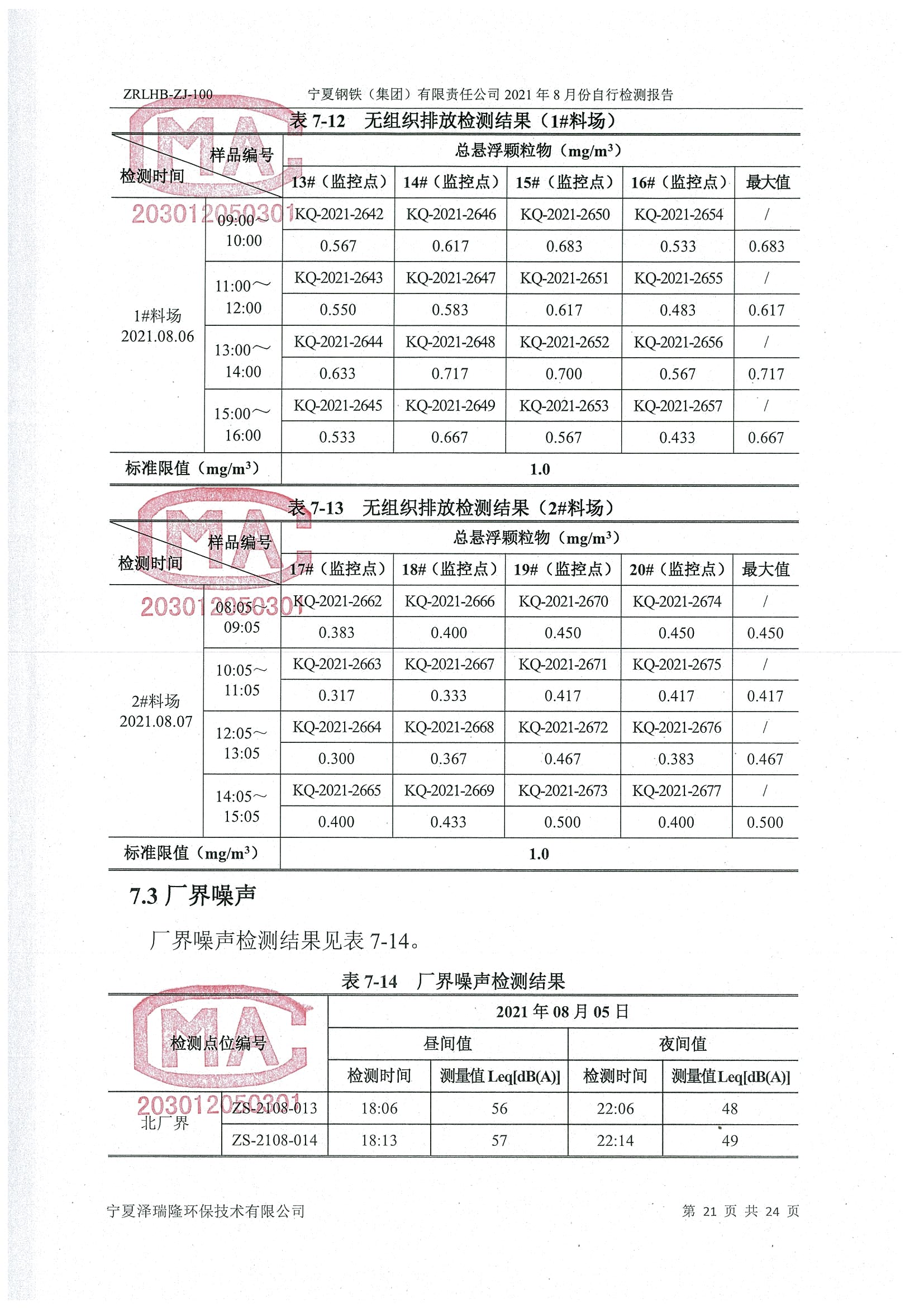 2021年8月份檢測(cè)報(bào)告