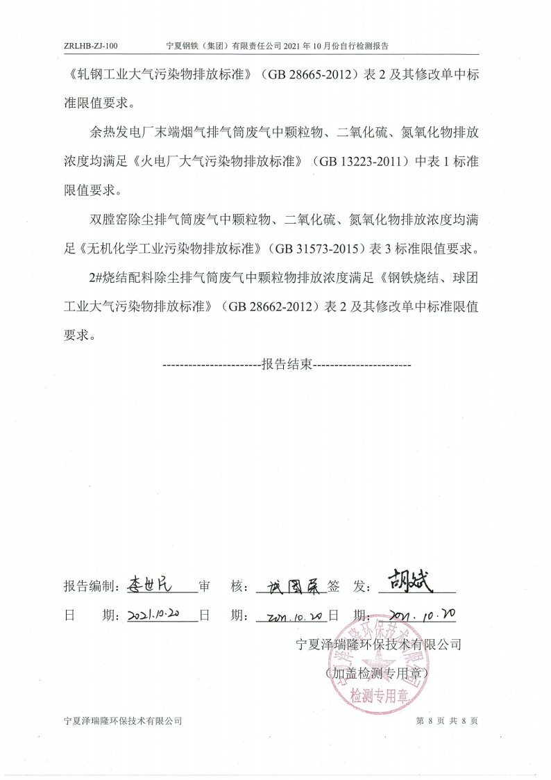 2021年10月自行檢測報告